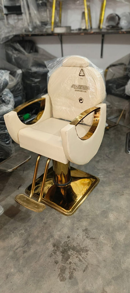 Elevate your salon’s luxury appeal with the Imperial Gold & Cream Styling Chair. This premium professional piece features a high-contrast design, blending soft cream upholstery with a brilliant gold-finished frame. Engineered for high-end boutique environments, it offers a sophisticated architectural silhouette that provides both a stunning visual statement and exceptional client comfort.